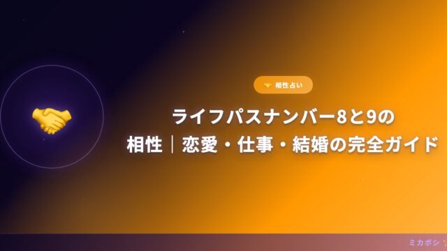 compatibilityライフパスナンバー8と9の相性|恋愛・仕事・結婚の完全ガイド ライフパスナンバー8と9の関係は、数秘術において非常に興味深い組み合わせです。異なる性質を持つ二つのナンバーが出会うとき、どのような化学反応が生まれるのでしょうか。この記事では、ライフパスナンバー8と9の相性を恋愛・結婚・仕事の場面ごとに詳... 2026.03.09compatibility